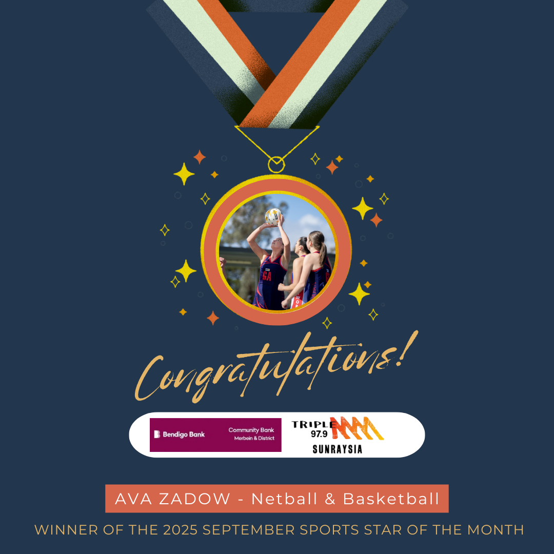 As the September winner Ava received a voucher proudly sponsored by Intersport and is now eligible for the 2025 Community Bank Merbein & District 97.9 Triple M Northern Mallee Sports Star of the Year Awards Peter Manolas Trophy at the Awards Gala Night on Friday February 20, 2026 at the Club Da Vinci, Mildura